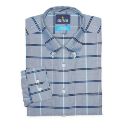 Stafford Coolmax Oxford Mens Button Down Collar Long Sleeve Wrinkle Free Stretch Dress Shirt Color Navy Lg Plaid Jcpenney